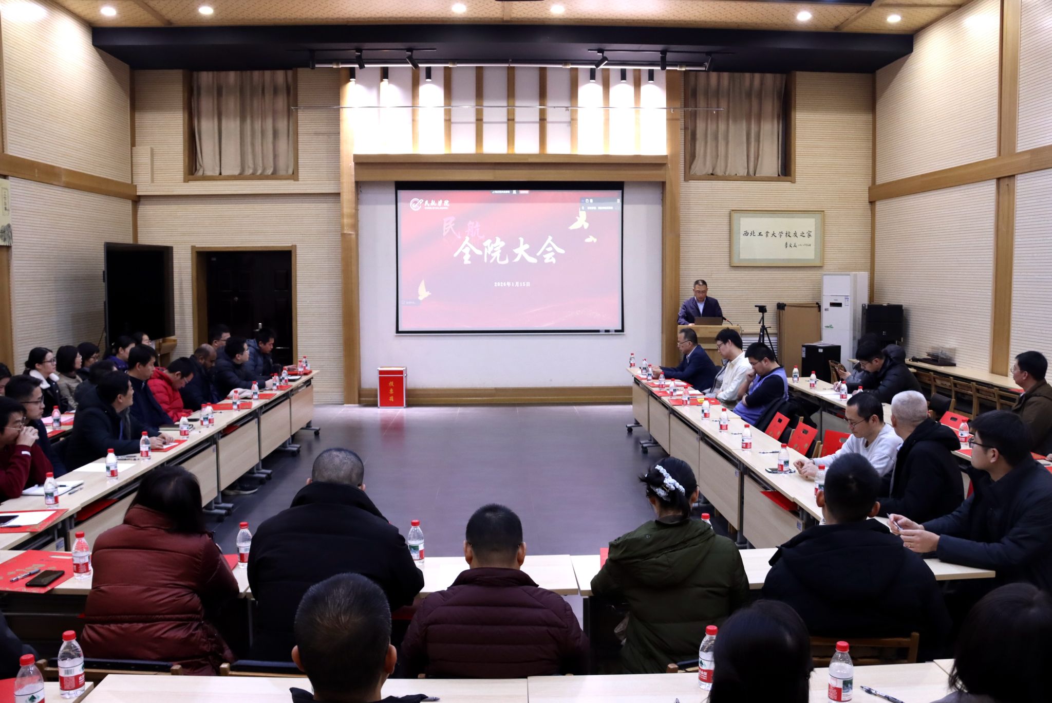2026年度全院教职工大会在西安友谊校区阶二会议室与太仓智汇港C702报告厅同步举行。学院全体教职工参加会议,会议由学院党委书记闫伟主持。