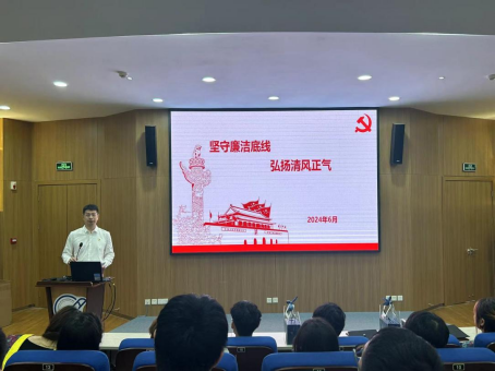 党总支副书记张龙在友谊校区研究生东馆C205报告厅,以《坚守廉洁底线,弘扬清风正气》为题为2024届本科生全体学生党员、发展对象、积极分子讲授“最后一堂党课”。