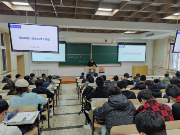 在长安校区教东D108教室召开2021级本科生成绩分析与学习经验交流主题大班会。学院副书记袁源,辅导员邬晓敬、邓勇和2021级全体学生参加本次班会。会议由邬晓敬主持。