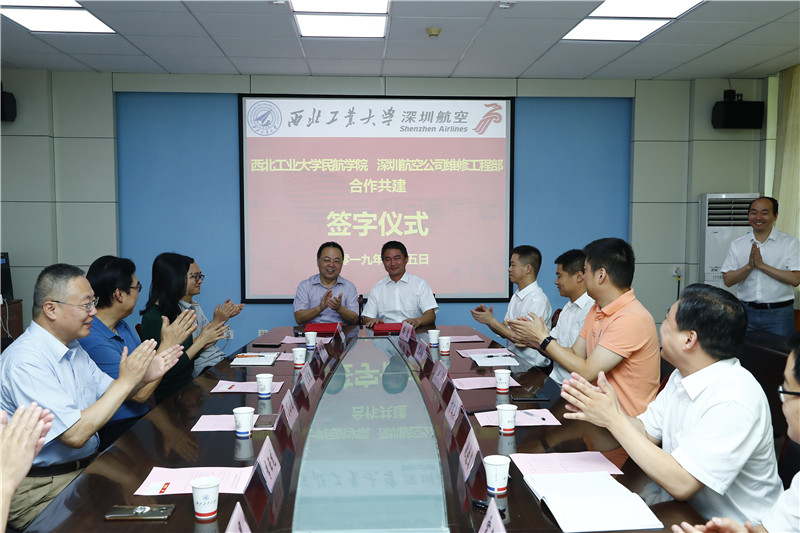 院长李玉龙教授与深圳航空有限责任公司维修工程部方文兵副总理签署了校企共建合作意向书。