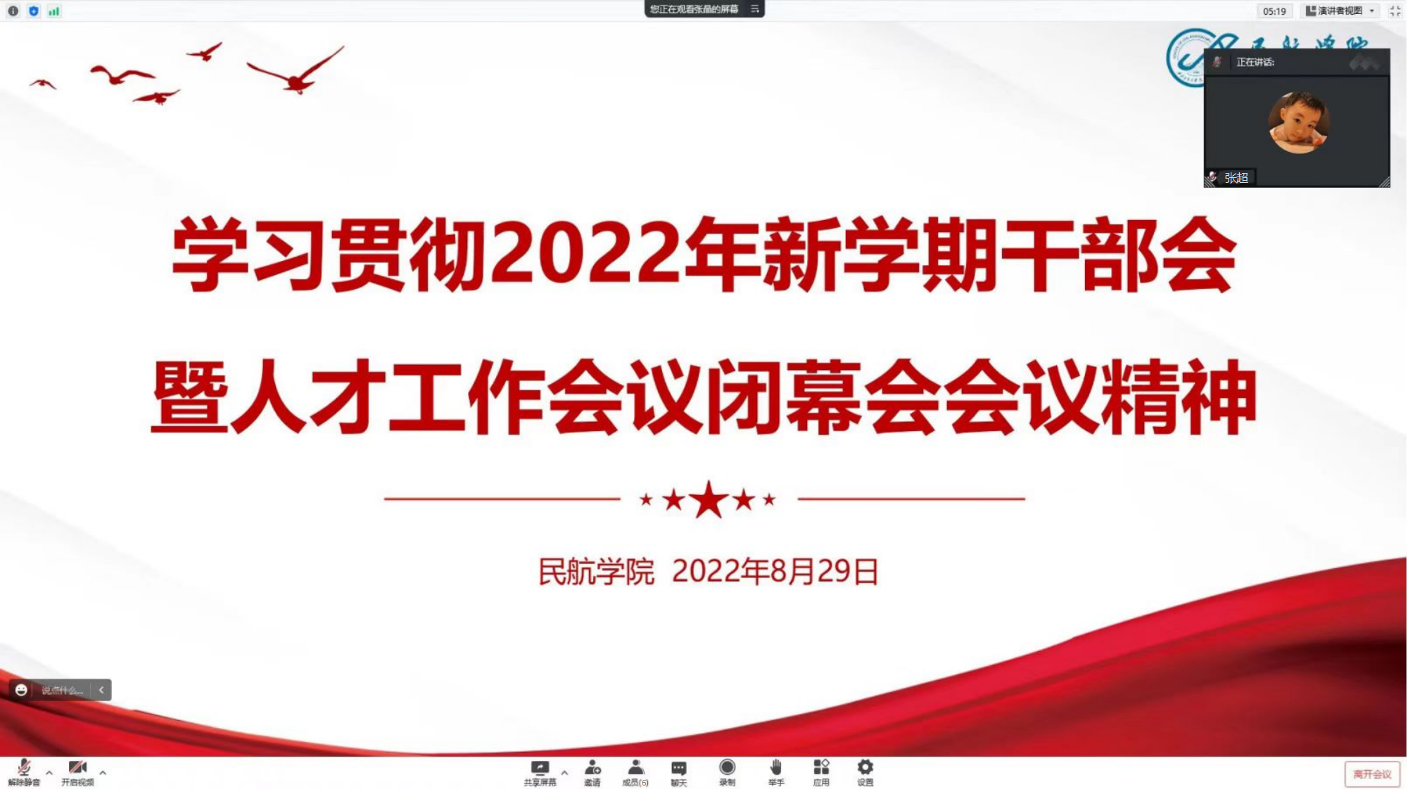 闫伟传达了张炜书记在学校新学期干部会议上的讲话精神,带领大家学习了汪劲松校长《主动服务新时代人才强国战略扎实推进学校人事人才工作高质量发展》的主题报告及学校四个行动计划精神。他强调要提高政治站位,真抓实干,立足民航特色,落实好四个“行动计划”,以实际行动迎接党的二十大胜利召开。